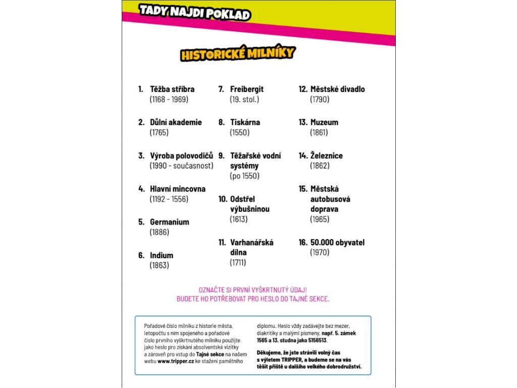 Během dnešní stopovací hry budete mít za úkol seznámit se s hlavními milníky freibergské historie a odhalit tu jedinou správnou, která vám umožní vstoupit do tajné sekce výletu na našem webu.