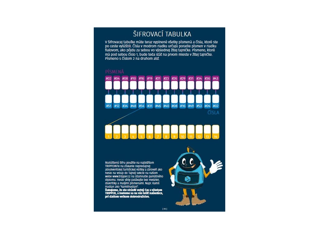 Výtisk obsahuje kompletní instrukce k absolvování celé trasy výletu bez nutnosti použití mapy, navigace nebo GPS souřadnic. Zároveň jsou na samostatné stránce připraveny úkoly pro děti, aby si i ti nejmenší užili ten skvělý pocit ze splněného úkolu a odhalení směru dalšího putování.