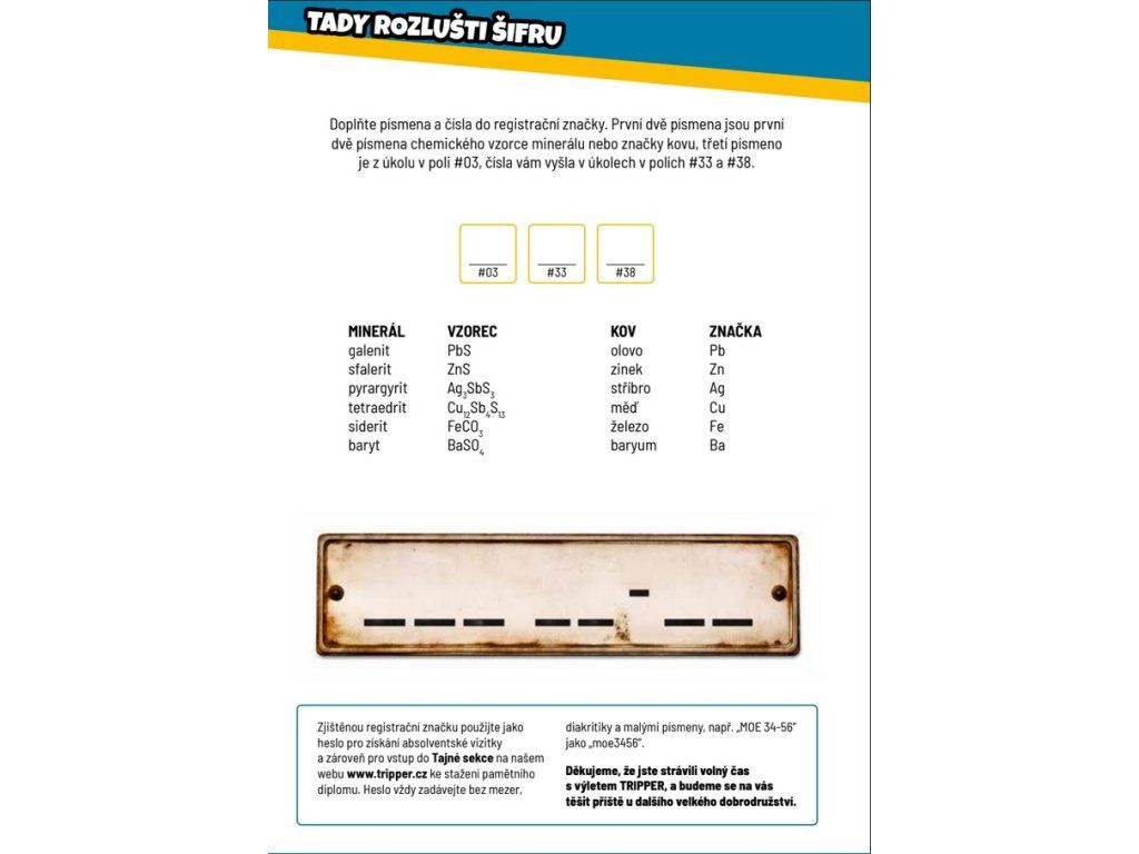 druh výletu: šifra